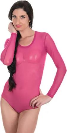 Damen Body transparent Kurzarmbody M pink
