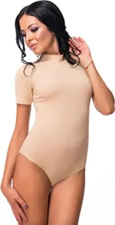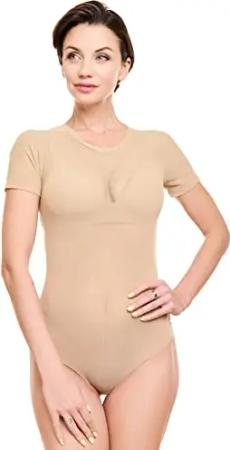 Damen Body Kurzarm, T-Shirt Bodysuit aus Baumwolle, Kurzarm-Body Elegant, Damen Unterwäsche hellbraun L