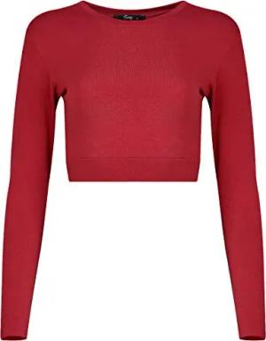 Damen Crop Top Bordeaux M Langarmshirt aus Baumwolle Bauchfrei
