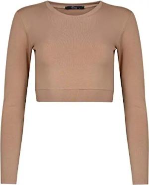Damen Crop Top Haut XL Langarmshirt aus Baumwolle Bauchfrei