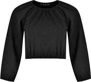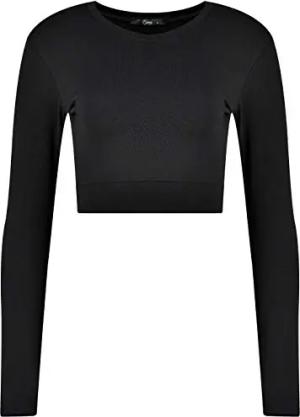 Damen Langarmshirt aus Baumwolle | Crop Top Langarm | Oberteil bauchfrei | kurzes Shirt Langarm XXL schwarz