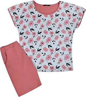 Damen Schlafanzug kurz Pyjama Set mit Blumen-Druck aschrosa XL