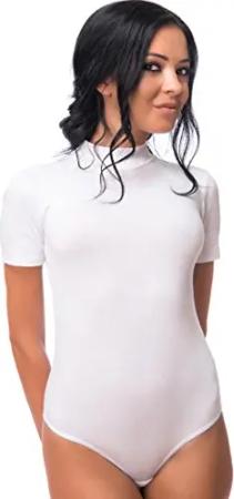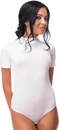Damen String Body Kurzarmbody mit Halbkragen aus Baumwolle XXL weiß