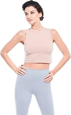 Damen T-Shirt aus Baumwolle | ärmelloses Top | atmungsakteves Oberteil | Tee Bauchfrei | Crop Top | kurzes Cropped Shirt Hellbraun M