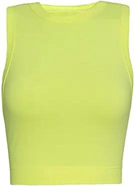 Damen T-Shirt aus Baumwolle | ärmelloses Top | atmungsakteves Oberteil | Tee Bauchfrei | Crop Top | kurzes Cropped Shirt Neongelb M