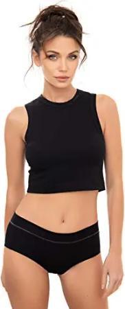 Damen T-Shirt aus Baumwolle | ärmelloses Top | atmungsakteves Oberteil | Tee Bauchfrei | Crop Top | kurzes Cropped Shirt schwarz S