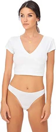 Damen T-Shirt mit V-Ausschnitt aus Baumwolle Kurzärmeliges Crop Top Atmungsakteves Oberteil T Shirt weiß L