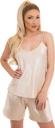 Satin Pyjama Set Kurze Hose S Cappuccino