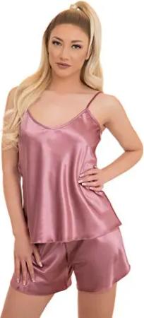 Satin Pyjama Set Kurze Hose L Rosa