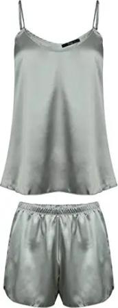 Satin Pyjama Set Kurze Hose L Silber