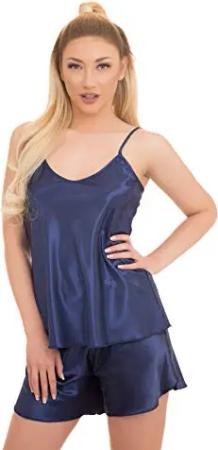 Satin Pyjama Set Kurze Hose XXL Dunkelblau