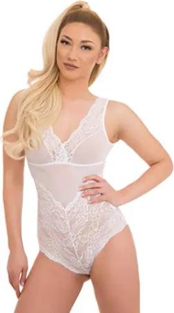 Tüllbody mit Spitzenslip weiß S
