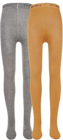 2er-Pack Baby- & Kinderstrumpfhosen Unifarben, Doppelpack Strumpfhosen aus Baumwolle für Mädchen und Jungen, MADE IN EUROPE, Grau/Gelb, Größe 134-146