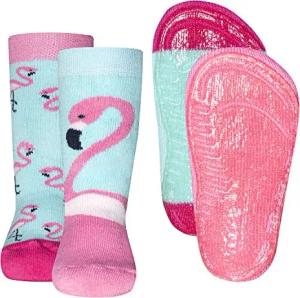 2er Pack Flamingo Stoppersocken SoftStep, Socken mit Antirutschsohle für Mädchen, Anti-Rutsch-Socken mit Gummisohle, 2 Paar rutschfeste Kindersocken, Größe 21-22