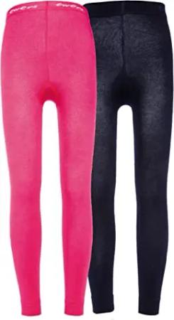 2er-Pack Kinderleggings Unifarben, Doppelpack Leggings aus Baumwolle für Mädchen, Made IN Europe, Dunkelblau/Pink, Größe 110-116