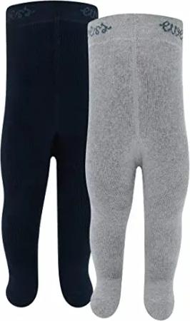 2er-Pack THERMO Babystrumpfhose/Kinderstrumpfhose Uni, 2 Strumpfhosen aus Baumwolle mit Innenplüsch und Komfortbündchen, Grau/Marineblau, Größe 68