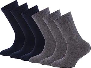 6er Pack Uni Socken, einfarbige Söckchen für Mädchen und Jungen, Baumwolle, MADE IN EUROPE, Mädchensocken Jungensocken Kindersocken, Größe 35-38, schwarz/grau