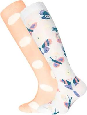 Mädchen Kniestrümpfe 2er Pack Schmetterlinge Punke latte/peach (27-30)