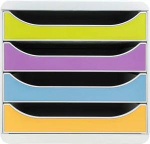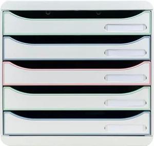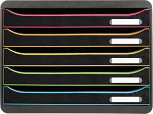 308914D Ablagebox Harlekin mit 5 Schubladen für DIN A4+ Dokumente. Belastbare Schubladenbox mit hoher Kapazität für mehr Platz auf dem Schreibtisch Big Box Plus Horizon Schwarz|Bunt