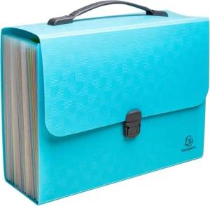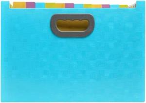Ref. 55199E – 1 Fächermappe erweiterbar offen mit Griffen Pop'Nco – Deckel aus recyceltem PP – Innenseite aus PP – 24 Fächer – Maße: 33 x 23,5 x 25 cm – Farbe Cyan