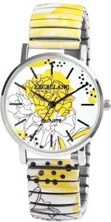 Damen-Zugbanduhr Edelstahl Ø 36 mm Motiv Bunt Print Analog Quarz 1700060 (Weiß-Gelb/Blumen)