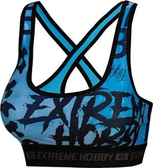 Skull 2, Damen Sport BH Stärker Halt, Blau, Bustier Bralette, Thermoregulationssystem, Trainings-BH, Sport Top, Sportunterwäsche, Thermoaktiver Sport-BHS, Sport Oberteile, M