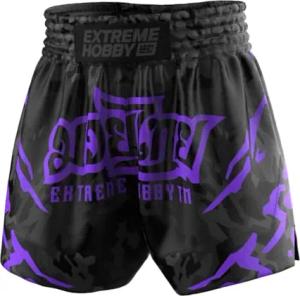 Muay Thai Shorts Black Panther, Ultraleichte Satin Dehnungsbeständig Kordelzug Männer Thaibox Hose für Herren, Größe 2XL Lila