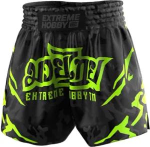 Muay Thai Shorts Black Panther, Ultraleichte Satin Dehnungsbeständig Kordelzug Männer Thaibox Hose für Herren, Größe 2XL Lime