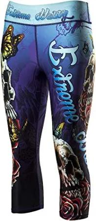 Sportleggings für Damen Skull 2 3/4, Yogahose, Sommer Laufhose, Elastische, Crossfit, Gym, Fitness