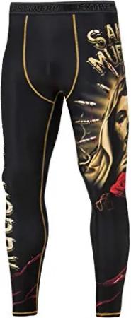 Sportleggings für Herren Santa Muerte, Leggings für Männer, Kampfsport, Laufhose Herren, Lang mit Kompressionseffekt, Schnelltrocken-Funktion