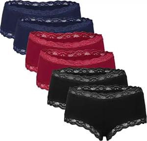 6 Stück Damen Hipster Baumwoll Unterhosen Frauen Höschen Slips Panties Unterwäsche mit Spitze Sets Pack - Hotpants Brazilian mehrpack Multifarb Set 38