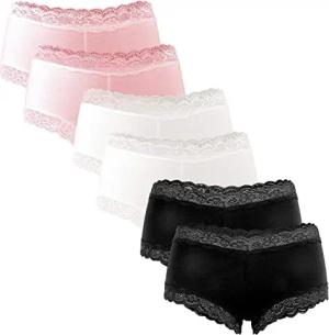 6 Stück Damen Hipster Baumwoll Unterhosen Frauen Höschen Slips Panties Unterwäsche Spitze Sets Pack - Hotpants Brazilian mehrpack 2X Rosa/2x Weiß/2x Schwarz 36