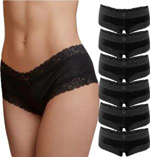 6er Pack Damen Panties Hipster mit verführerischen Spitzendetails - Frauen Unterhosen Slips Brasil Spitze Set Unterwäsche 6X Schwarz 44-46
