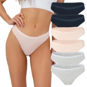 6er-Set Baumwoll Damen Strings Tangas Unterwäsche - Frauen Thong Unterhosen in Größe S-XL 2X Dunkelblau/2x Grau/2x Rosa S