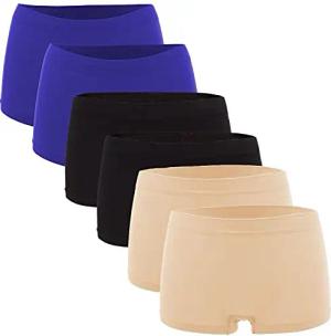 Damen Panties 6er Pack Hipsters Boxershorts nahtlos, Seamless aus weichem Microfaser-Gewebe 2X Royalblau/2x Schwarz/2x Apricot XS -34