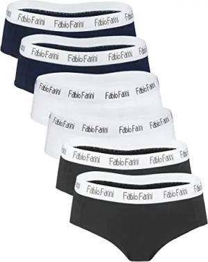 Damen Pantys 6er Pack Frauen Hipster Panties Set aus Baumwolle, mit weiß abgesetztem Bund Multifarb M