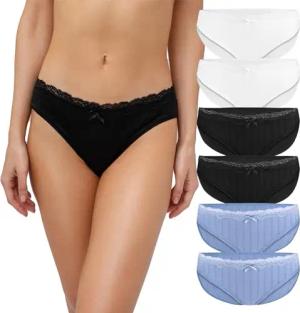 Damen Pantys Bikini-Slips 4er/6er Pack Mehrere Farben und Größen, atmungsaktive Baumwolle XL 6er Pack Mit Spitze Mehrfarbig