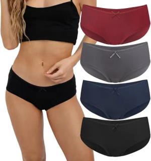 Damen Pantys Bikini-Slips 4er/6er Pack Mehrere Farben und Größen, atmungsaktive Baumwolle Ohne Spitze Dunkelrot Dunkelgrau Dunkelblau Schwarz L