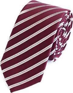 Modern gestreifte Herren Krawatte in 6cm - Passend fürs Büro zum Anzug durch Robuste Pflegeleichte Mikrofaser Dunkelrot Silber