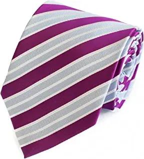 Modern gestreifte Herren Krawatte in 8cm Breite - Schlipse Passend fürs Büro zum Anzug durch Robuste Pflegeleichte Mikrofaser Magenta Silber Weiß