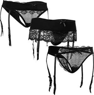 verführerische Damen Strumpf-Halter Strapsgürtel Lingerie Lingerie in verschiedenen Designs und Farben 3X Schwarz 36-38