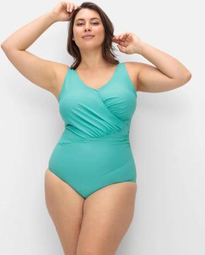 Große Größen: Badeanzug in Wickeloptik, tiefer Rückenausschnitt, lagune, Gr.40B-56F