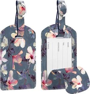 [2 Stück] Fintie Kofferanhänger aus Kunstleder, Gepäckanhänger ID Etikett mit Adressschild Namenschild für Reisetasche Koffer, Blühender Hibiskus