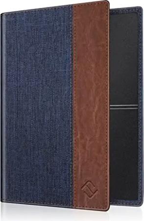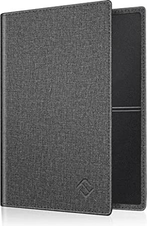 Reisepass Impfpass Schutzhülle - Premium Kunstleder Reisepasshülle Travel Organizer mit RFID-Blockier für Kreditkarten, Ausweis, Reisedokumente Damen Herren, Denim Dunkelgrau