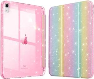 Glitzer Hülle für iPad 11./10. Generation (2025/2022 A16 Chip) mit Stifthalter - Transparente Dünne Schutzhülle, Stoßfest & Glitzer Klar Rückseite für Mädchen/Kinder, Regenboge