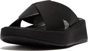 Damen F-mode Leather Flatform Cross Slides Keilsandale, Schwarz, 37 EU