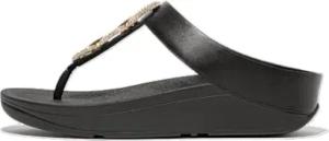 Fino Damen-Sandalen mit Metallic-Zehensteg und Perlenknöpfen, schwarz metallic, 37 EU