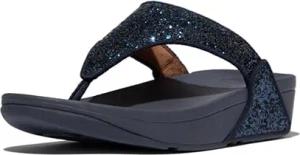 Women's Lulu Glitter Flip Flops, Toe-Post Sandals, Comfortable with Natural Arch Support - Midnight Navy - 4 UK