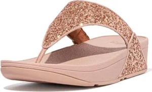 Women's Lulu Glitter Flip Flops, Toe-Post Sandals, Comfortable with Natural Arch Support - Rose Gold - 8 UK
