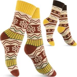 2 Paar Warme Hygge Winter Wollsocken im Vintage-Design - Gelb 35-38